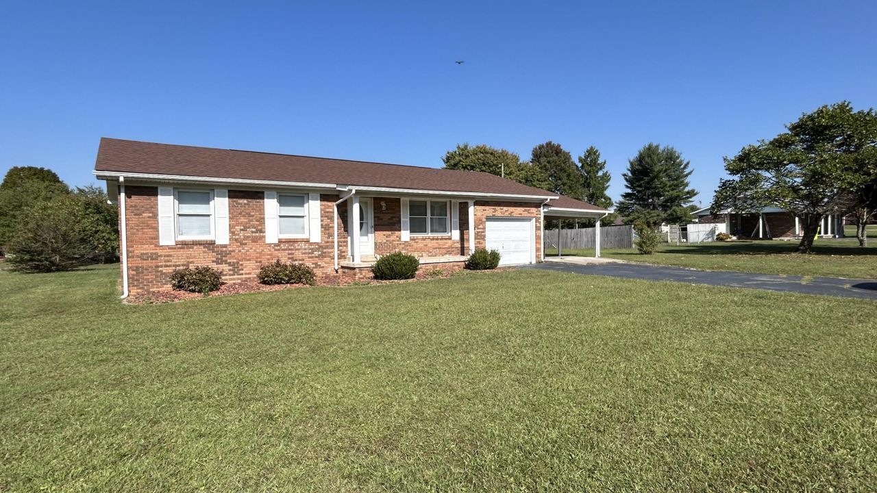Great opportunity, great location, and affordable price! This one level brick ranch is located just outside London city limits on oversized corner lot big enough for garden space or additional structures! Interior has been refurbished in the last 3-5 years- flooring, appliances, shingles, ceiling fans, vanities, countertops, paint & more. Offering 14X17 living room w auxiliary space heater, 13X18 eat-in kitchen w auxiliary space heater, 3 bedrooms, one full bath, and one half bath with utility hookups. Additional features- electric ceiling/cable heat with replaced individual room thermostats, central AC, 11.5X27 single car attached garage, single car attached carport with storage room and 12X12 storage building. Lot is 150'wide and 175' deep. This property would make great starter home, retirement home or investment rental property!