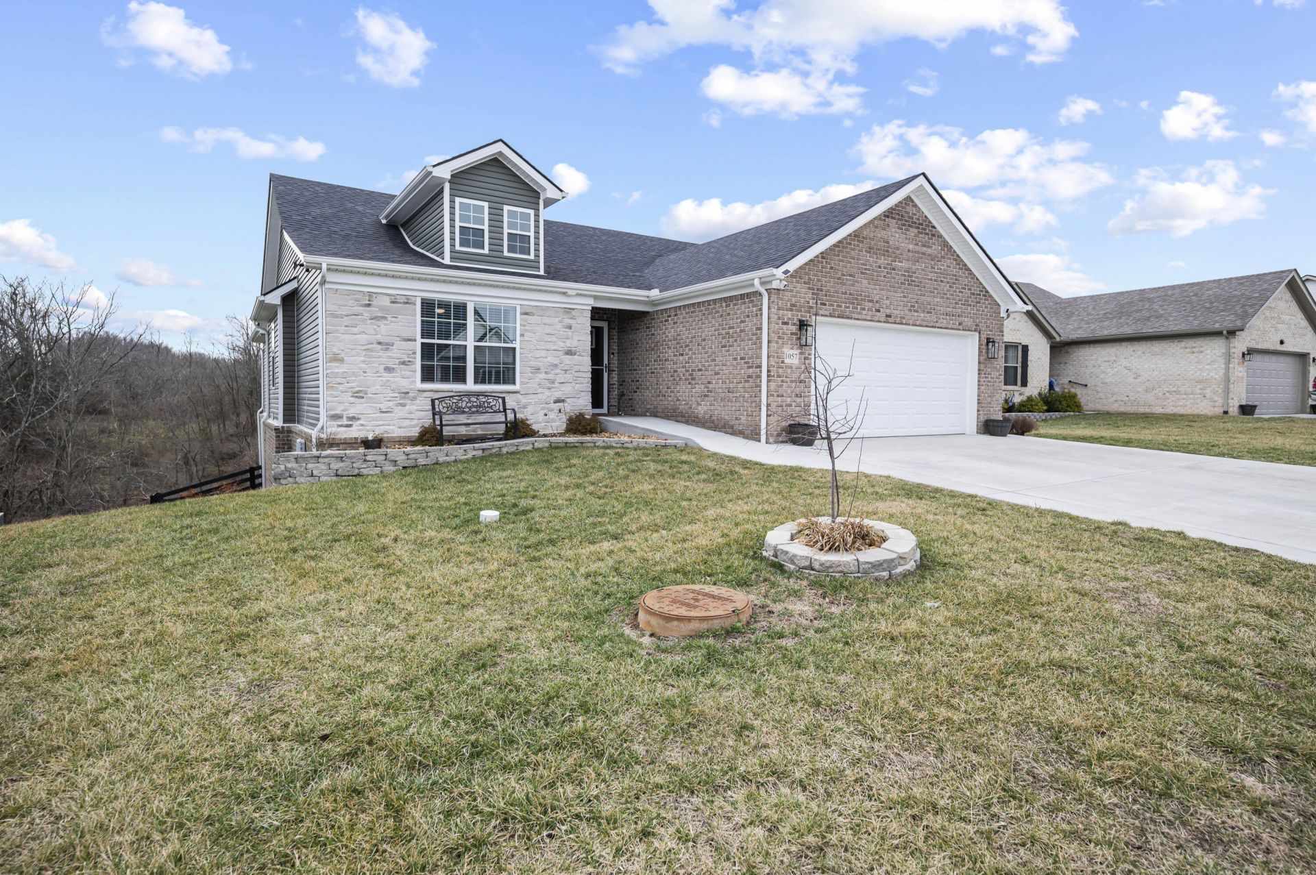 Welcome to 1057 Mission Drive in the highly desirable Magnolia Pointe community???where neighborhood charm meets everyday convenience. With walking trails, fishing ponds, a family park, dog park, street lights, and thoughtfully placed cluster mailboxes, Magnolia Pointe was designed for connection and ease. Located just minutes from shopping and I-75, you're never far from what you need. Built in 2024, this home backs up to PERMANENT GREEN SPACE - a peaceful pond and treelike, offering beautiful backyard views and one of the most desirable lot settings in the neighborhood. Inside, natural light pours into the open main living space, highlighting the upgraded finishes and thoughtful design choices throughout. The coffered ceilings in the living room add warmth and character, while the seamless flow into the kitchen and dining area makes it easy to picture everything from busy weekday mornings to holiday gatherings with family and friends. A large walk-in pantry upstairs adds both function and convenience. The primary suite feels like a place to truly unwind, complete with a spacious walk-in closet, tiled shower, and a beautiful electric fireplace that creates the perfect cozy atmosphere at the end of the day. With five bedrooms and three full bathrooms, there's room for everyone to have their own space. The walkout basement offers incredible flexibility with two bedrooms, a full bathroom, home office, an additional living area, and a full second kitchen???ideal for extended stays, guests, or creating a space that grows with your needs. You'll also find dedicated storage and a bonus flex room that could easily serve as another office, hobby space, or extra storage area. Step outside to the fully fenced backyard and covered deck overlooking the pond???an inviting spot for morning coffee, evening conversations, or simply enjoying the view. Designed with both everyday living and long-term flexibility in mind, this home offers space, comfort, and thoughtful details in one of Richmond's most loved communities.