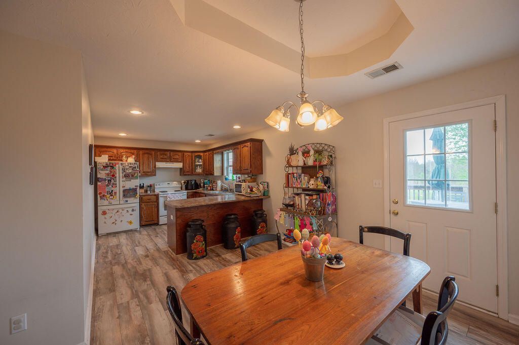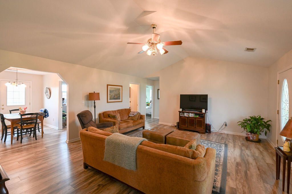 Welcome to this charming ranch-style property offering 3 bedrooms and 2 full bathrooms. Once inside you will find the primary suite and living room with vaulted ceilings. The kitchen and primary bedroom both showcasing tray ceilings. Recent updates include a beautifully renovated second bathroom and durable laminate flooring installed throughout the home (2023). A new 16x16 deck was added to the back of the home to expand outdoor living (2023). You can enjoy the natural beauty of the outdoors with a backyard that offers scenic views as it backs up to a farm. The property features both wild and domesticated blackberry bushes???perfect for seasonal picking right in your own yard. This home blends comfort, updates, and a serene setting???don't miss your opportunity to make it yours!
