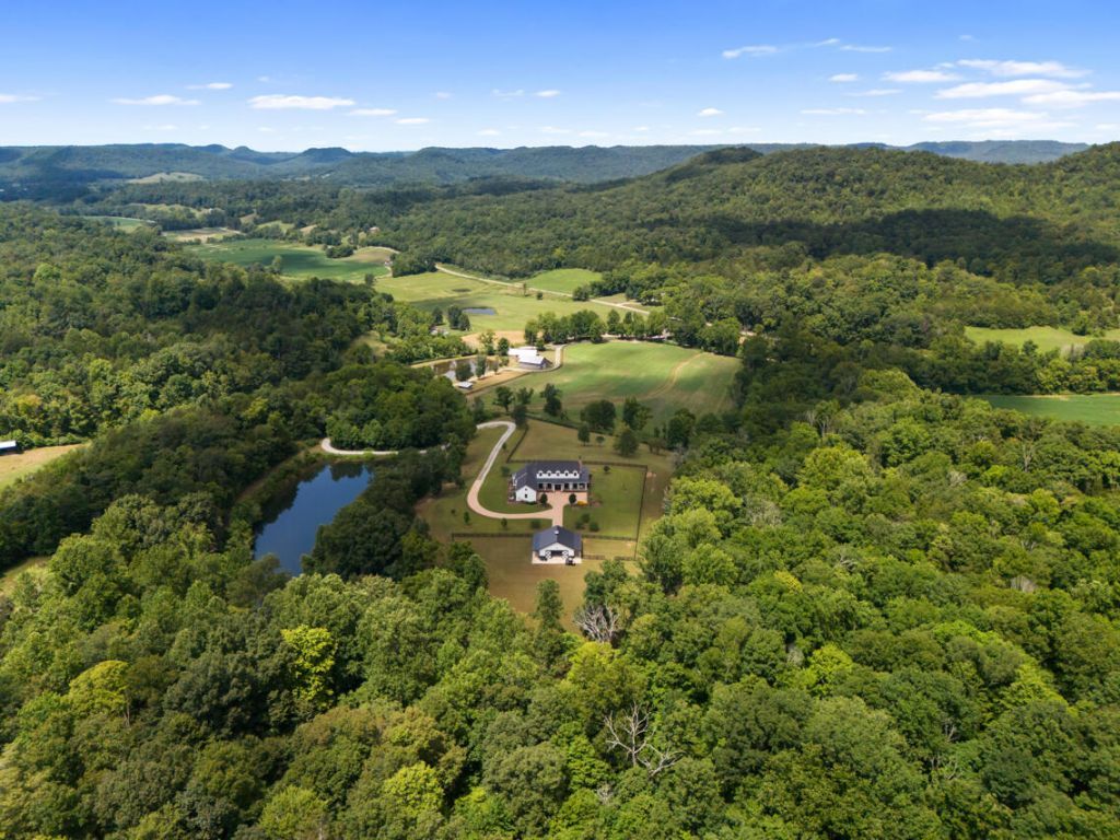 Experience the beauty and privacy of this exceptional Kentucky estate, nestled in the heart of the Bluegrass State with breathtaking panoramic views. A scenic drive through lush farmland guides you to this luxurious, top-quality home, thoughtfully designed by a Dallas architect. Perfect for indoor/outdoor entertaining, the residence features professional décor, custom stonework, exquisite light fixtures, elegant window treatments, and a gourmet kitchen with high-end Sub Zero/Wolf appliances. Modern comforts include; built-in sound system, butler's pantry, office/laundry room, mudroom, and a spacious great room with a wet bar. Enjoy relaxing on the expansive 1,356 sq. ft. wrap-around porch. The property is equipped with a propane back-up generator, a 1,000-gallon buried propane tank, and high speed fiber internet. Located near to the home is the 4-stall Morton horse barn (36X36), featuring a cupola fan, concrete center aisle, wash bay, hot/cold water, heated tack room, stall fans, mats, automatic waterers, and a fly spray system. The original mule barn (with a new roof) offers a fully equipped studio apartment that sleeps six, with a full kitchen, bath, and walk-in closet. The large tobacco barn (also with a new roof) provides two steel storage containers for secure storage, while the carriage barn houses a workshop with multiple electrical outlets and additional storage. High speed internet.
