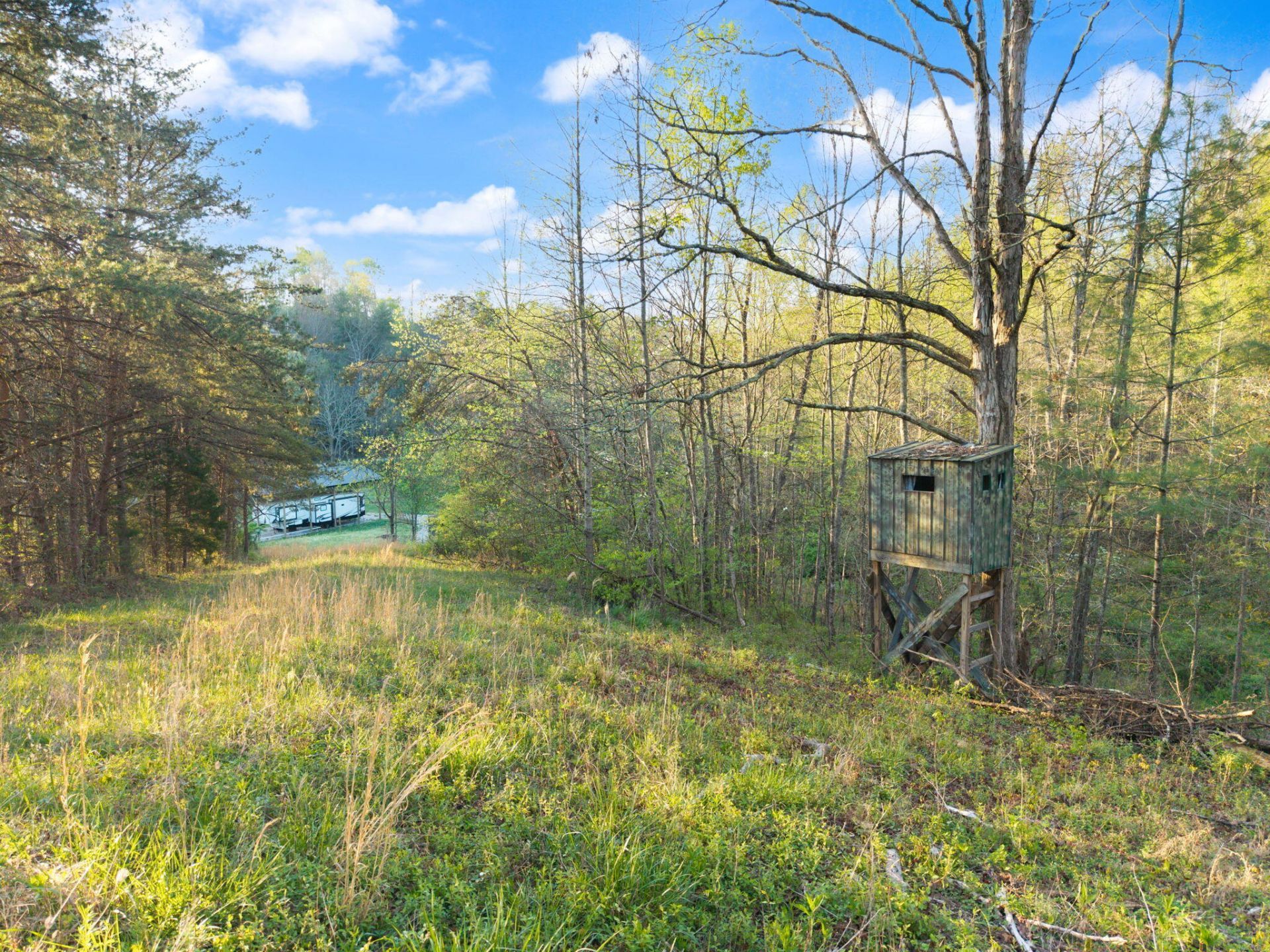 Tucked just a short drive off Hwy 460, this 25-acre slice of Kentucky countryside is the kind of place that makes you slow down the minute you pull through the gate. Fenced on three sides with a gated entrance, the land opens up to a mix of open pasture and mature woods, offering privacy, flexibility, and that peaceful 'out here, it's different' feeling. Nature lovers and outdoor folks will feel right at home here. Wildlife is abundant -- deer, turkey, rabbits, squirrels, and more -- making it ideal for hunting, nature watching, or just sipping coffee while the woods wake up around you. A gentle creek winds through the property, along with a seasonal creek that flows after rainfall, adding to the peaceful setting. Mature hardwoods, including walnut trees, create a stunning forested backdrop, and a beautiful natural rock wall lines the left side of the land -- a unique feature that climbers and outdoor enthusiasts will especially appreciate. The location is hard to beat for recreation. You're only about 7 minutes from Broke Leg Falls and roughly a 20-minute drive to trailheads at Red River Gorge, making this a perfect basecamp for hiking, climbing, and exploring -- or a quiet retreat once the adventure wraps up. The land is the primary offering. Currently on the property is a 2020 43-foot Forest River Sabre 36BHQ fifth wheel, set on a permanent foundation and fully connected to septic, water, electric, and internet. A massive 50x24x16 pavilion with a metal roof covers the camper, providing excellent protection and a great covered space for gatherings or relaxing outdoors. The camper is not required to convey with the sale of the land but may be purchased separately if the buyer would like to keep it in place. Additional improvements include a shipping container (approximately 30x20) ready for storage or potential conversion, a smaller storage building, and a large pole barn at the back of the property for vehicles, equipment, or lawn care tools. With utilities and infrastructure already in place, the property would also be well-suited for adding a manufactured home. The cleared land offers room for livestock, gardening, or homesteading, while the woods provide privacy and recreation. Whether you're envisioning a weekend getaway, hunting retreat, short-term rental opportunity, mini-farm, or full-time homestead -- this property offers the flexibility to make it your own. If country living with convenience, adventure, and opportunity sounds like your thing... y'all might want to take a closer look.