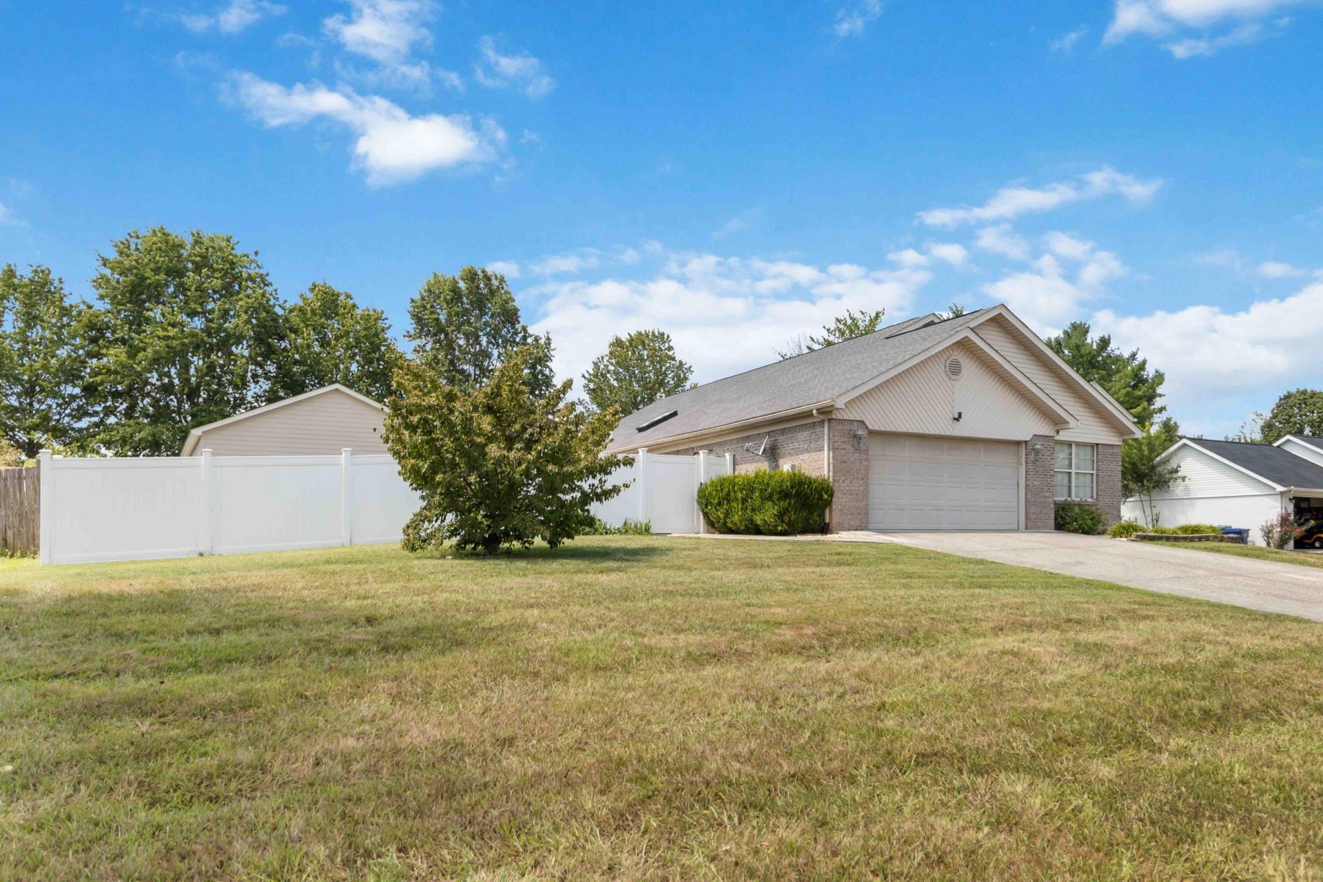 Enjoy comfort and convenience in this inviting home just 2 miles from Lee's Ford Marina. Ideally located with the roof at only 3 YEARS OLD and the HVAC system only 1 YEAR OLD! The open great room offers vaulted ceilings and flows into the formal dining and a well-equipped kitchen with new appliances (2023). A spacious primary suite features, not only a jetted tub, but a separate shower, while three additional bedrooms offer flexibility for guests or a home office. Outside, relax in the fully fenced backyard with a covered patio, fire pit, and space for entertaining. A 30'x30' detached garage (built 2023) with two 10-foot doors provides ample room for boats, ATVs, and more. This turnkey home is ready for its new owner!!