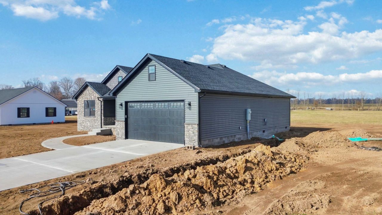 This brand-new 1,630 sq. ft. home is move in ready in the desirable Lear Crest Subdivision and sits on a beautiful, flat 0.5-acre lot just 4 miles from Brodhead, 5 miles to Mt. Vernon, and 14 miles from Berea. The floor plan offers an open main living area with a cathedral ceiling, a tray ceiling in the primary suite, and 3 bedrooms with generous closet space, including a walk-in closet in the primary. The primary bath will feature a double vanity and a custom walk-in tile shower. The kitchen will be finished with granite countertops and brand-new appliances. This home also includes a large attached 2-car garage and is highlighted by beautiful stonework across the front exterior, paired with durable Dutchlap vinyl siding that gives the home impressive curb appeal. This home is being built with attention to detail and quality finishes throughout. Don't miss the opportunity to own a brand-new home in a sought-after neighborhood close to town conveniences and just minutes from I-75.